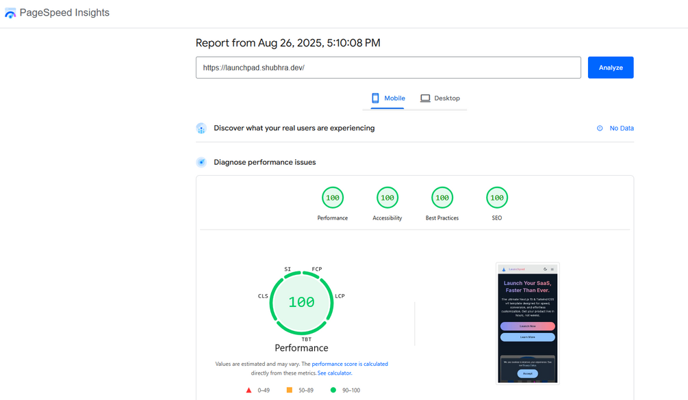 Mobile Performance: 100/100