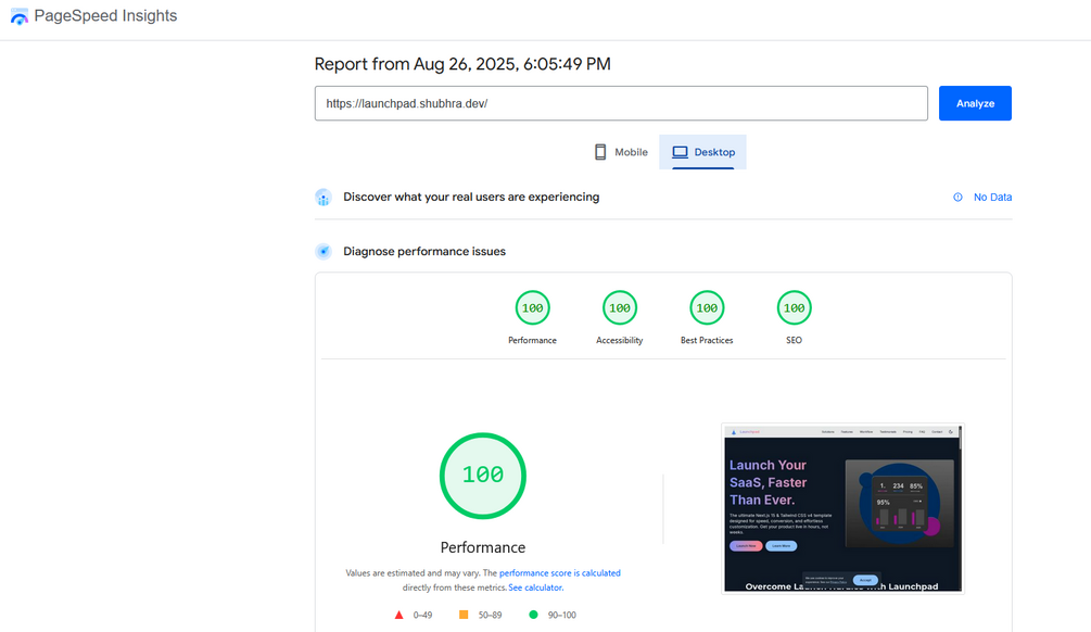 Desktop Performance: 100/100